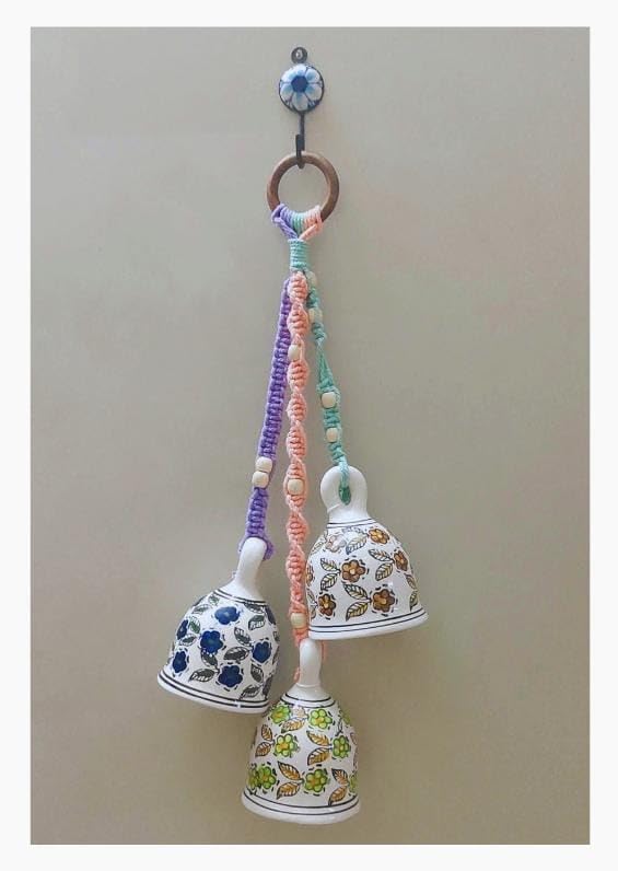 Premium Craftsmanship: Handcrafted ceramic bells with intricate macrame detailing.