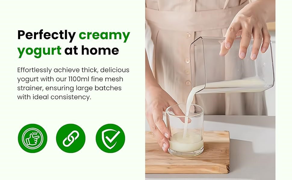 Healthier Meals: Helps you create nutritious, homemade yogurt and strain impurities from liquids.