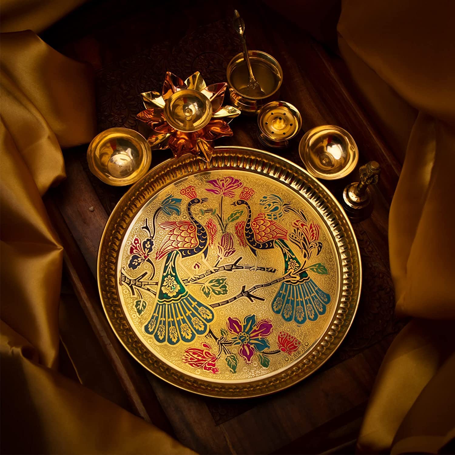 Perfectly Sized: Spacious enough to hold all your pooja essentials like diyas, incense sticks, kumkum, and flowers.